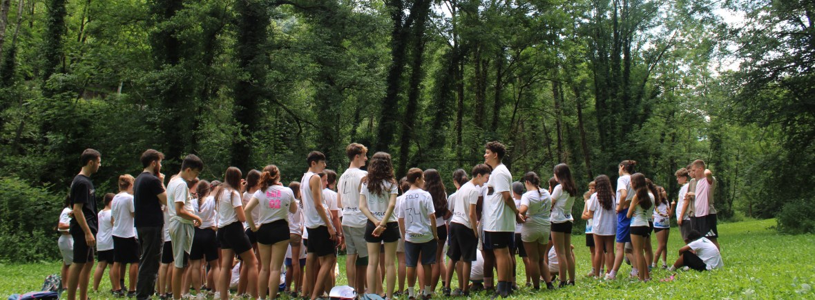 Un cop al trimestre realitzem una excursió de cap de setmana tots els grups d’edat junts. En aquestes excursions, anem a cases de colònies per estar en contacte amb la natura i fer activitats que no es poden realitzar dins de la ciutat. Com a punt de comunió d’aquestes excursions, el diumenge pel matí realitzem una activitat comuna on participen tots els infants.